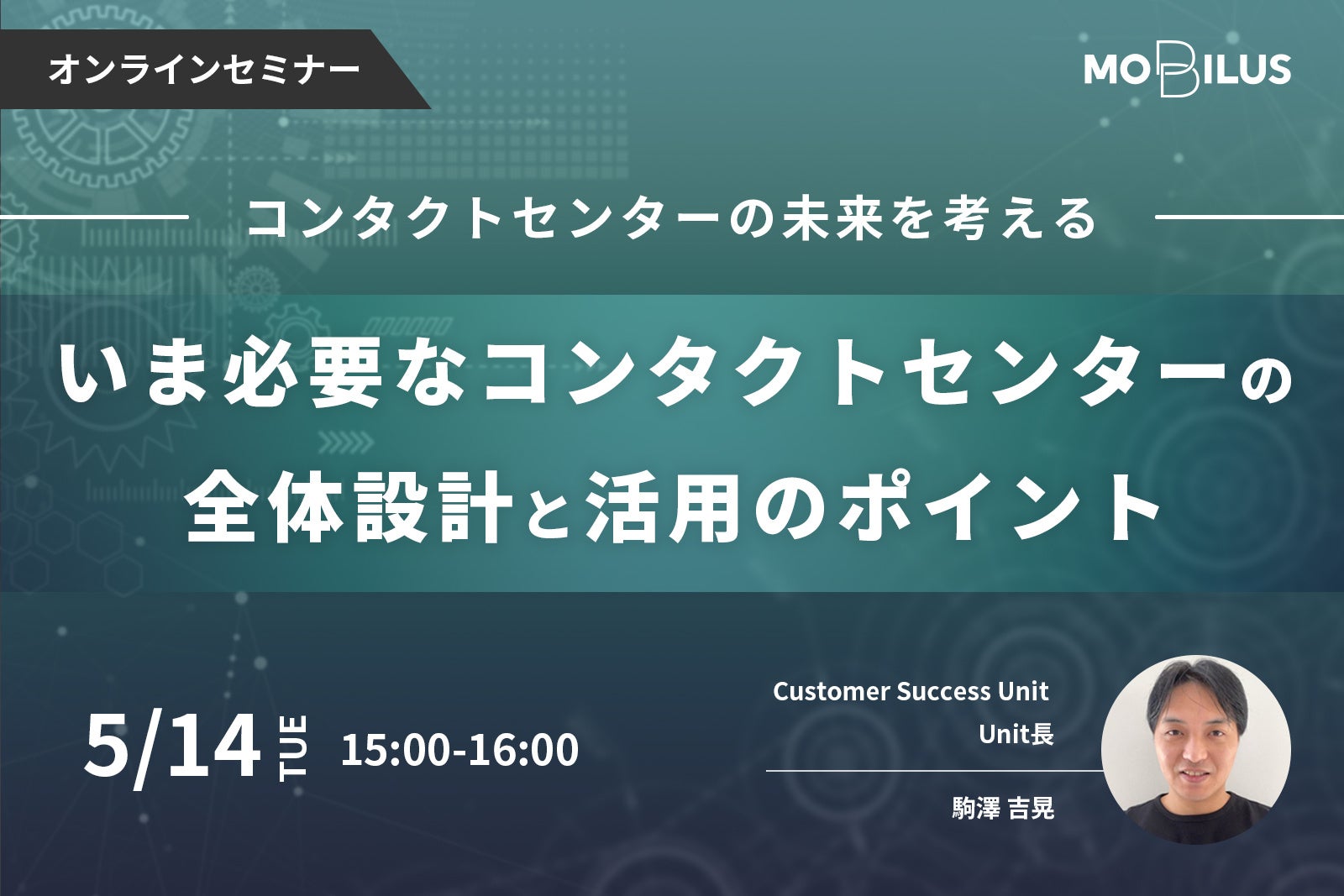 The SupportTech Companyとして顧客サポート支援のソリューションを開発・提供するモビルス株式会社(本社:東京都港区、代表取締役社長:石井智宏)は、5月14日(火)に『コンタクトセンターの未来を考える~いま必要なコンタクトセンターの全体設計と活用のポイント~』というテーマでオンラインセミナーを開催します。