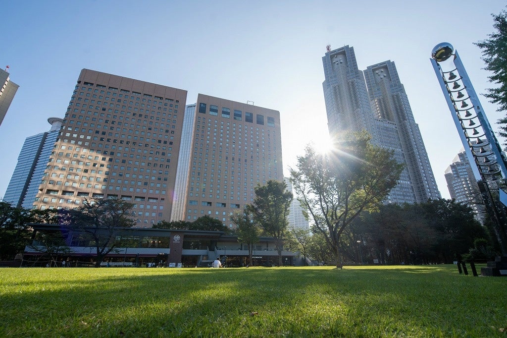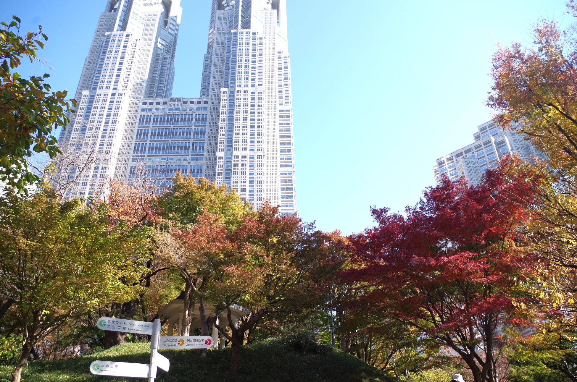 都市と秋の景色が広がる新宿中央公園に