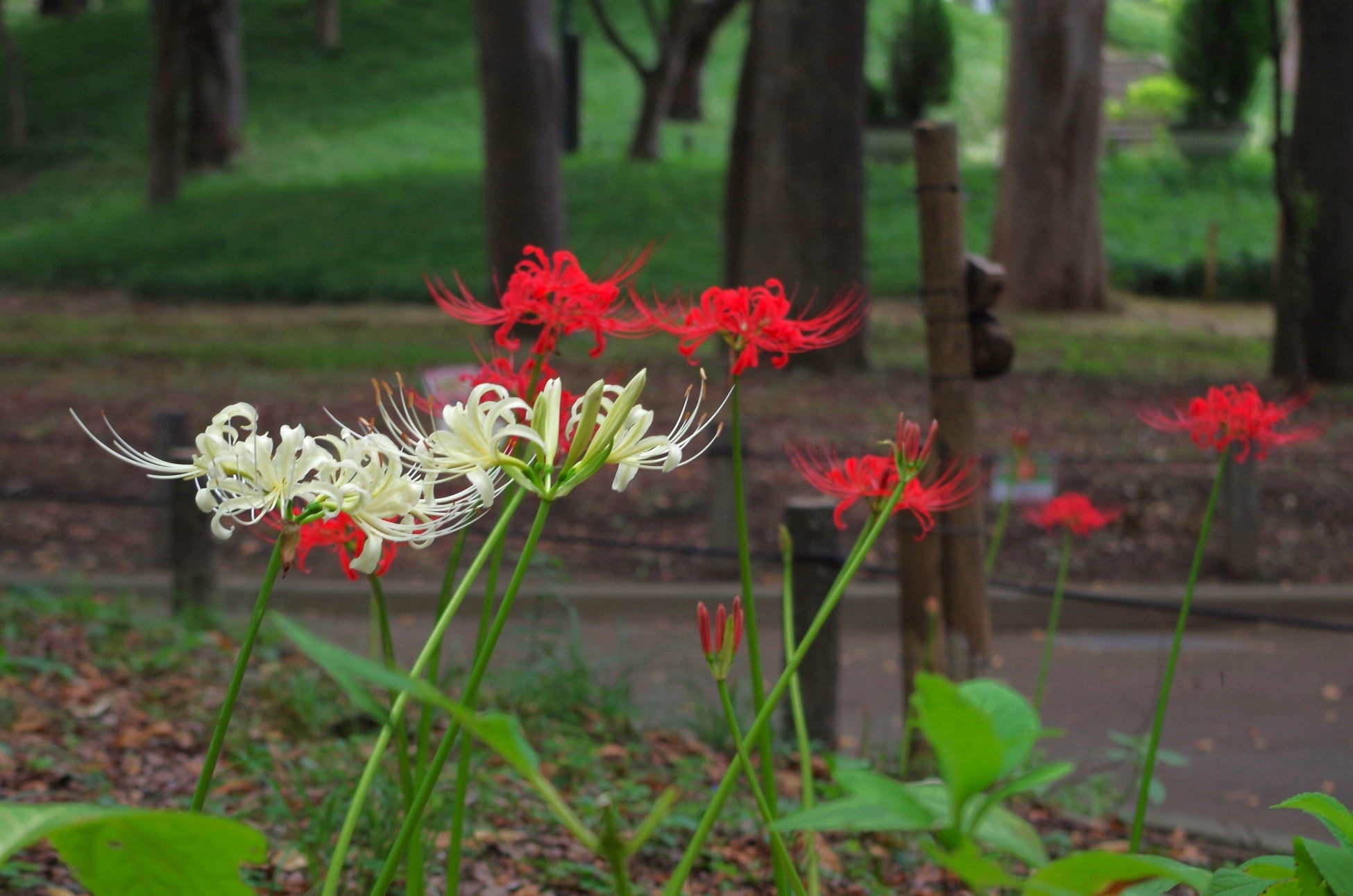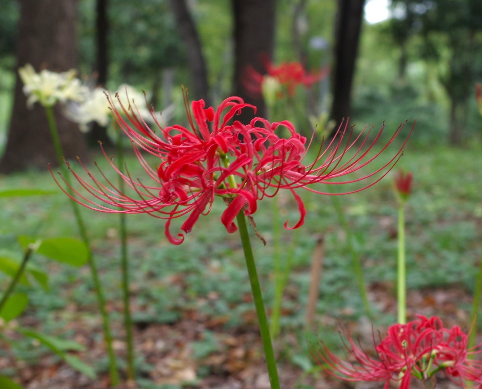 赤いリボンのような可憐な姿や白いヒガンバナが必見です。