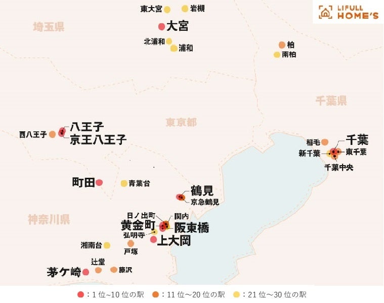 全体としては、東京都心からほぼ同心円状の準郊外のターミナル駅が上位となり、その周辺駅が準じる形で続く結果となりました。再開発が今後さらに予定されている主要駅、またその周辺駅で住まいを探せば、新しい街の利便性を享受しながら比較的家賃を抑えて暮らすことができるといえます。