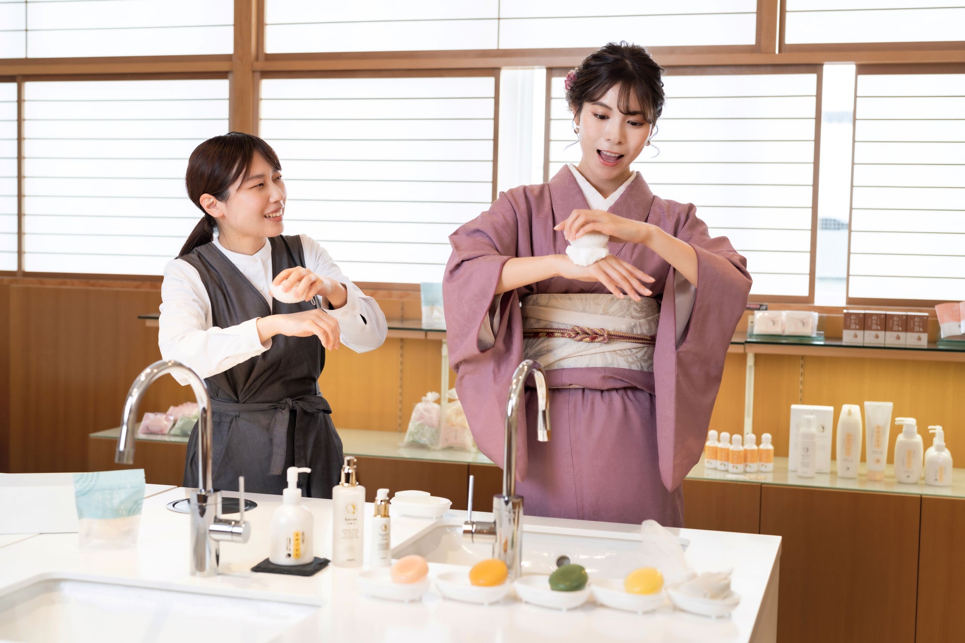 OMO5京都祇園から徒歩約2分の場所にある、よーじや祇園本店にて、よーじやのスタッフがスキンケアについてレクチャーするオプショナル講座を開催します。最初に、200種類以上の商品が揃えられた空間で、よーじやの歩みをご紹介。その後、実際にアイテムを使いながら、肌の調子を整え、保湿していく美しい素肌づくりをレクチャーします。京都の化粧文化や美意識に触れ、自身の肌にも向き合うことで、自分自身の美意識を高められます。お土産として、保湿成分米ぬかエキスを配合し、じっくりと肌のケアができる「ぬか袋」をプレゼント。