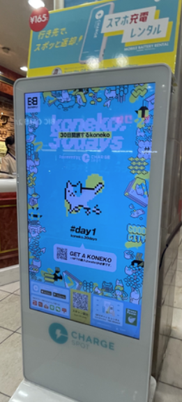 モバイルバッテリーシェアリング「ChargeSPOT」を展開する、株式会社INFORICH(本社:東京都渋谷区、代表取締役社長:秋山 広宣)と、シブヤピクセルアート実行委員会(本部:東京都渋谷区、:坂口 元邦、以下シブヤピクセルアート)は、2023年9月15日(金)から1ヶ月、渋谷・原宿周辺に設置している100台のChargeSPOTのデジタルサイネージにて、ピクセルアーティストのBAN8KU氏が制作する作品を展示いたします。