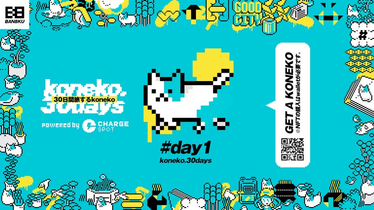 9月15日に開幕するピクセルアートの祭典「SHIBUYA PIXEL ART2023 〜HAKKO〜」にて、今年デビュー10 周年を迎える⼈気ピクセルアーティストBAN8KU ⽒のkonekoとコラボを実施。BAN8KU氏が生み出すkonekoが、30日間、毎日異なる姿で現れ、たくさんの人と出逢いながら明るく元気にしていきます。