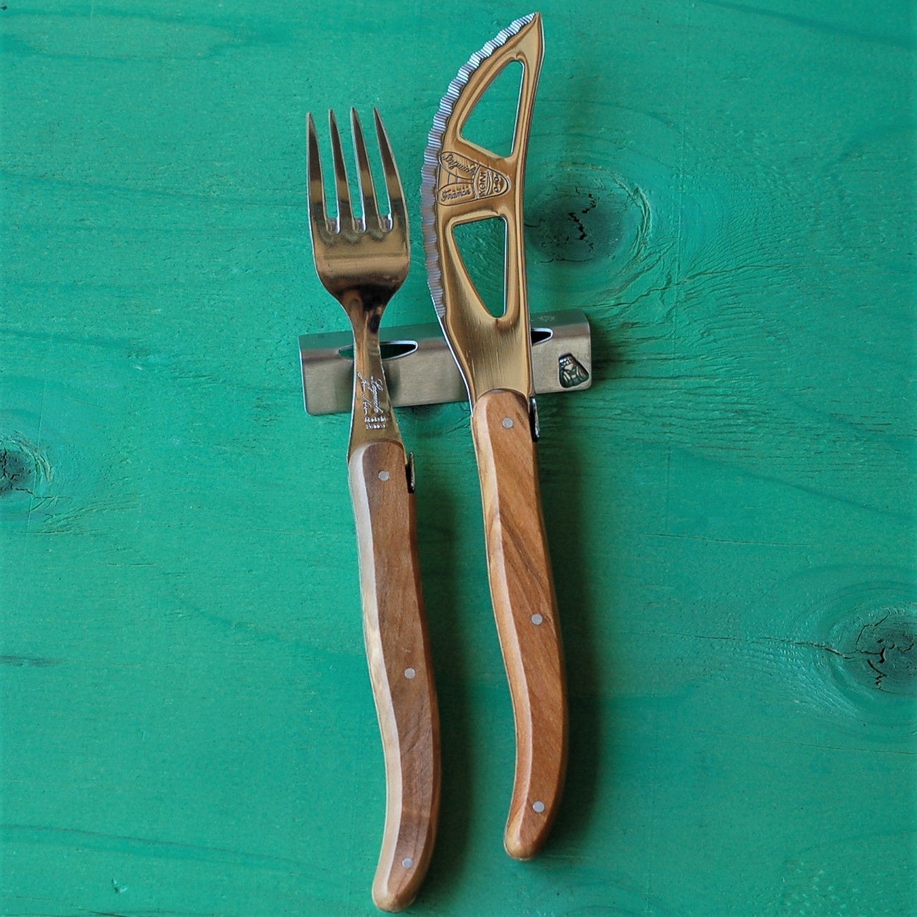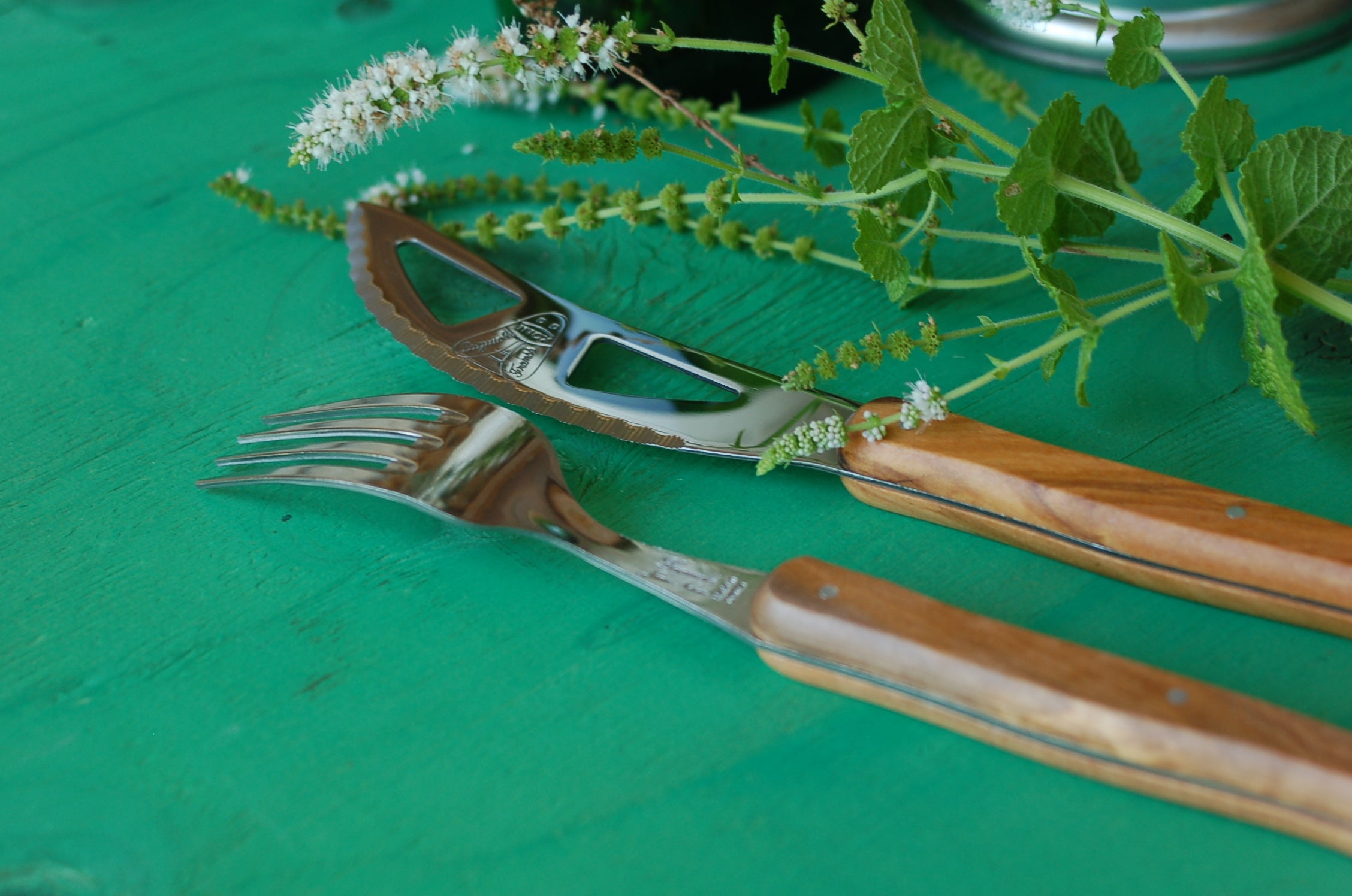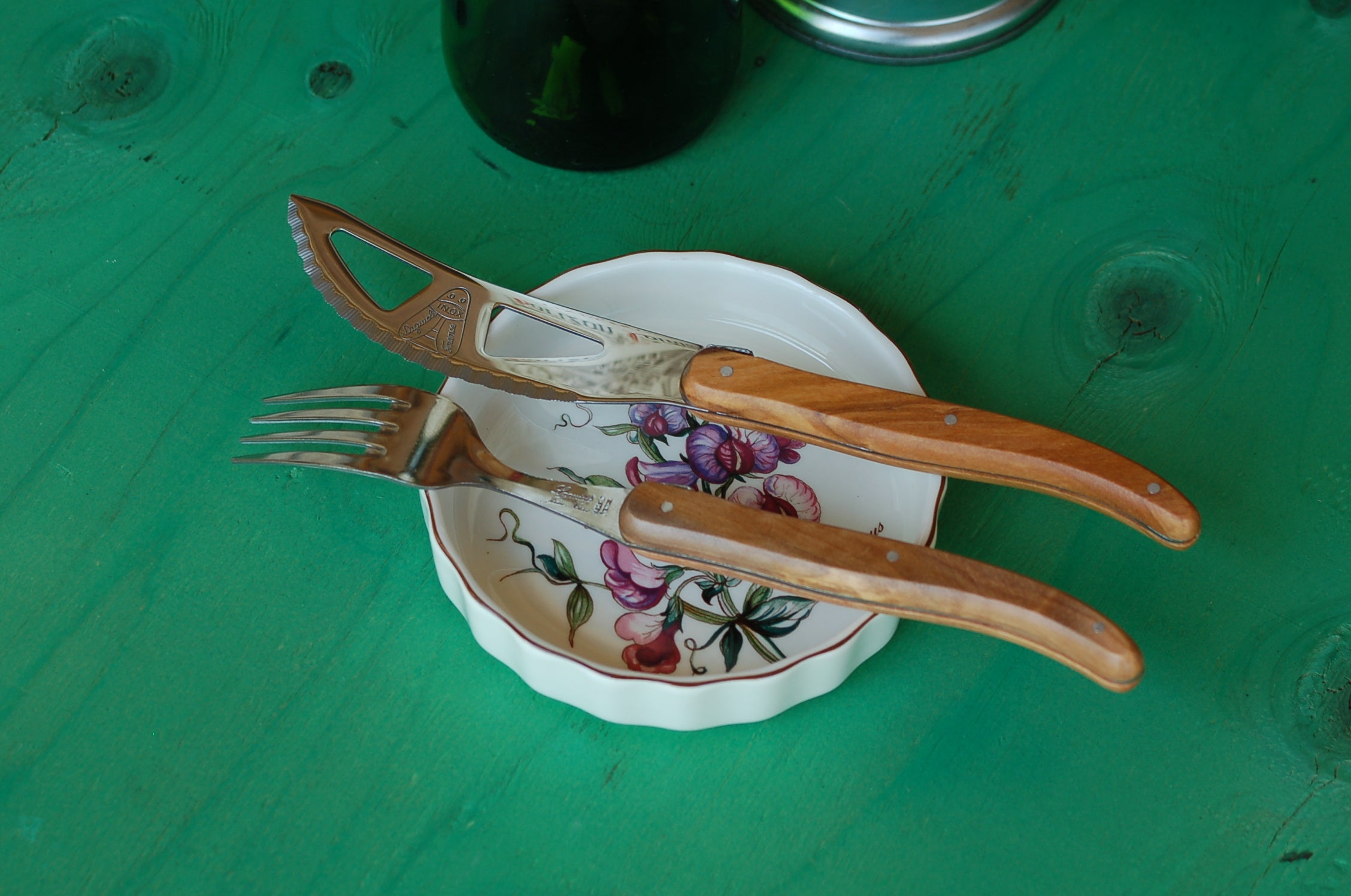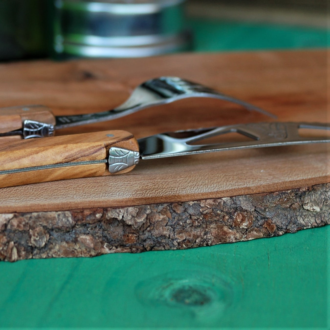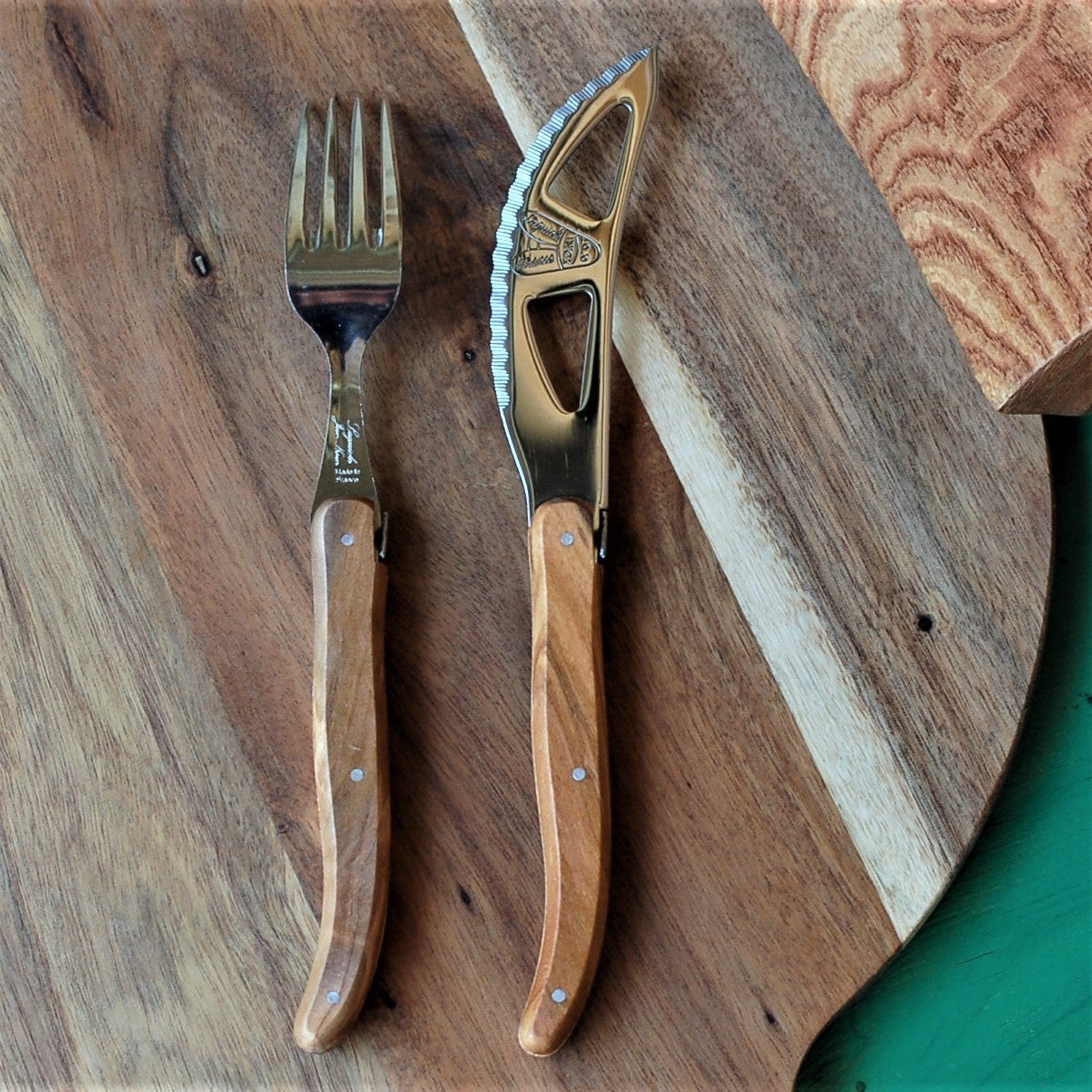 ピザタイムの新しい習慣 ライヨールのピザナイフとディナーフォークを環境に優しいギフト箱に入れました。 ハンドル部分は天然オリーブ材で個性タップリ