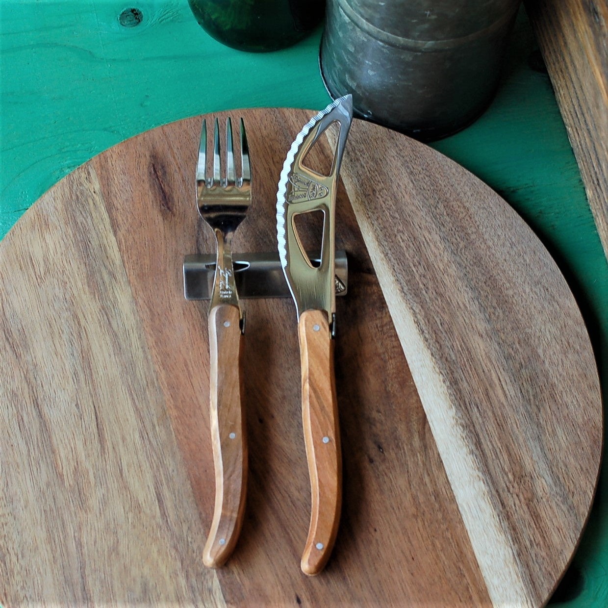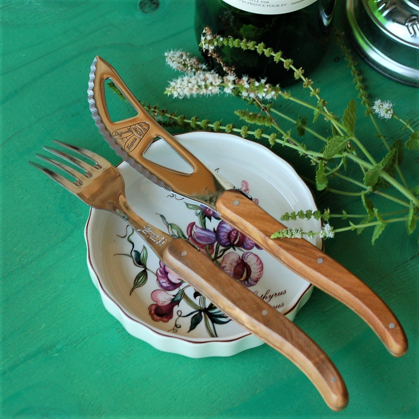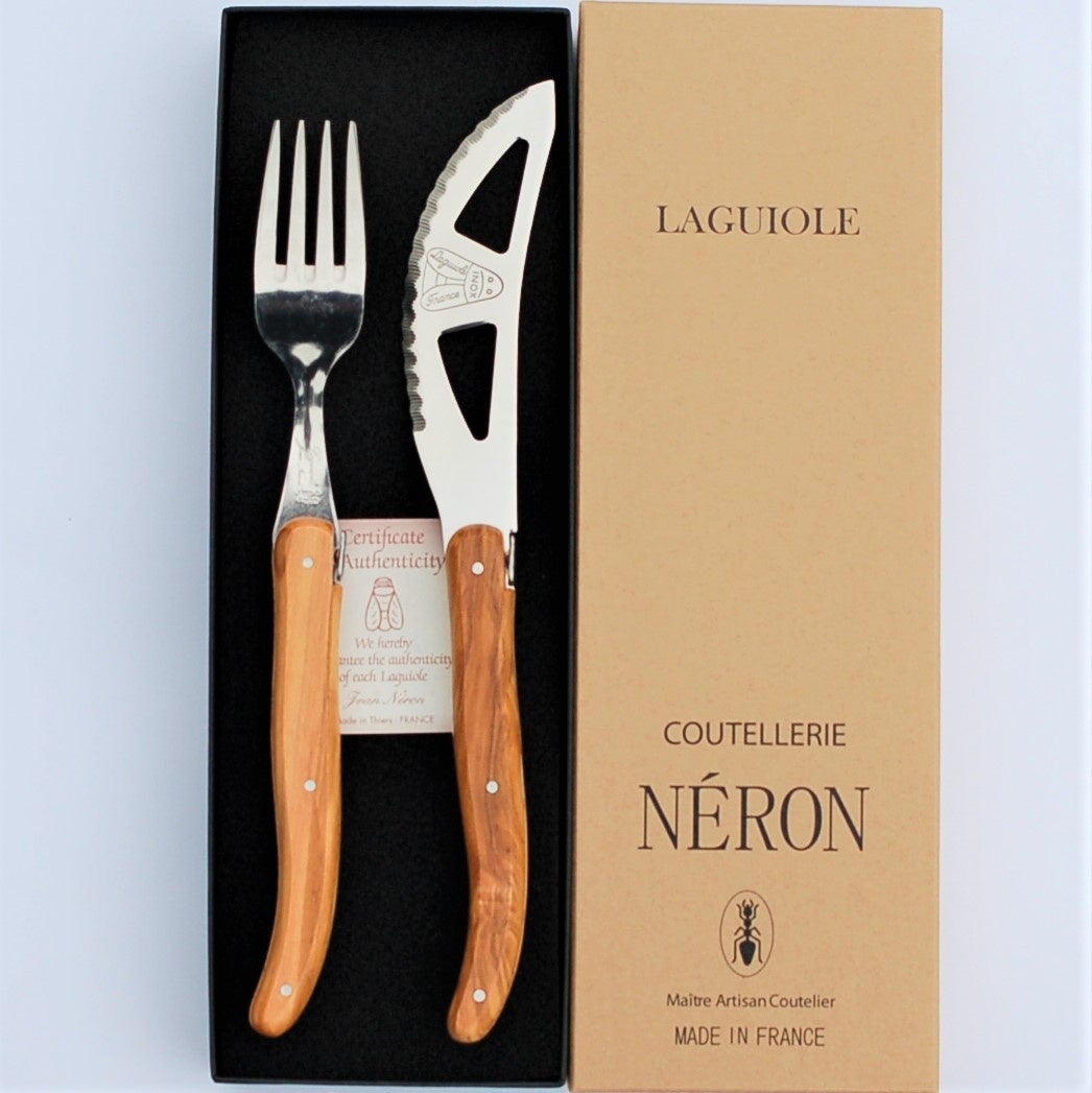 サイバール株式会社はライヨール オリーブハンドル ピザナイフ、ディナー・フォーク 欧州仕様セット ギフト箱入り フランス製 NERON の販売を開始しました