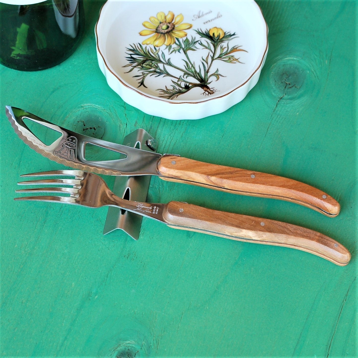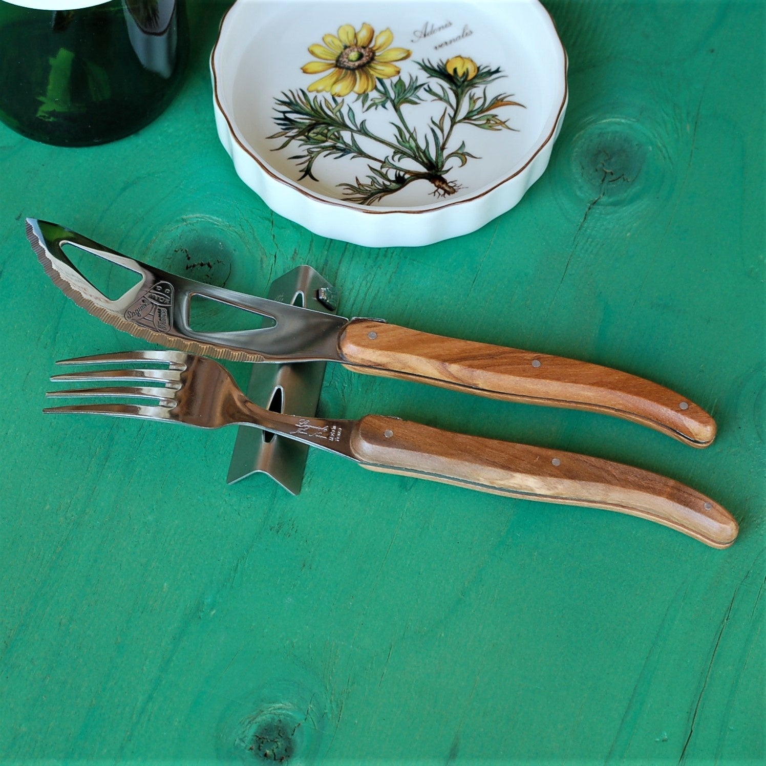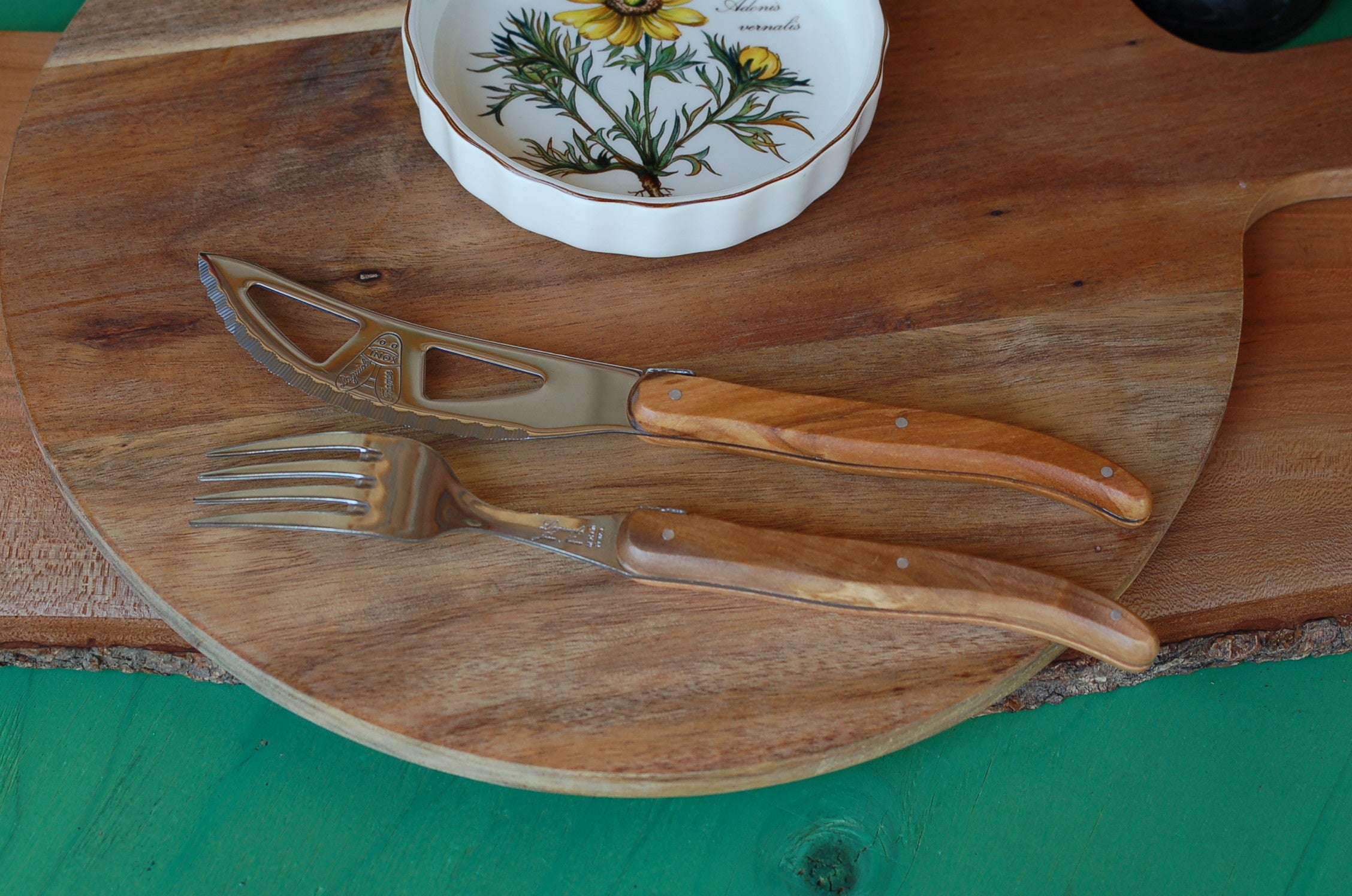 サイバール株式会社はライヨール オリーブハンドル ピザナイフ、ディナー・フォーク 欧州仕様セット ギフト箱入り フランス製 NERON の販売を開始しました
