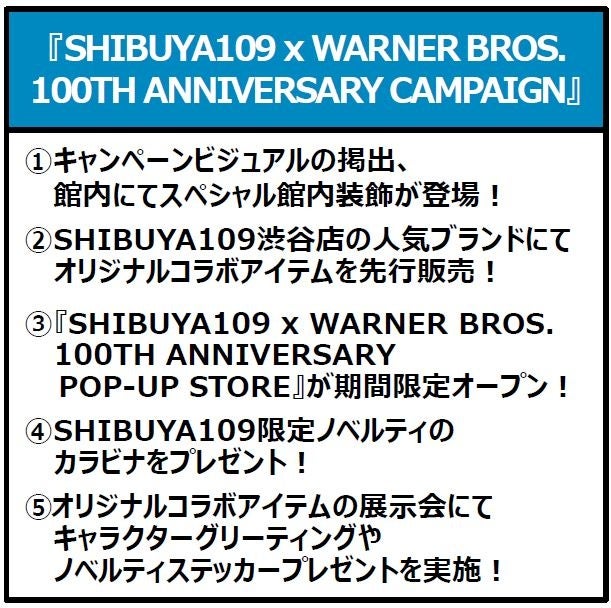 特設ページ:http://www.shibuya109.jp/x/WARNERBROS.100TH_ANNIVERSARYCAMPAIGN