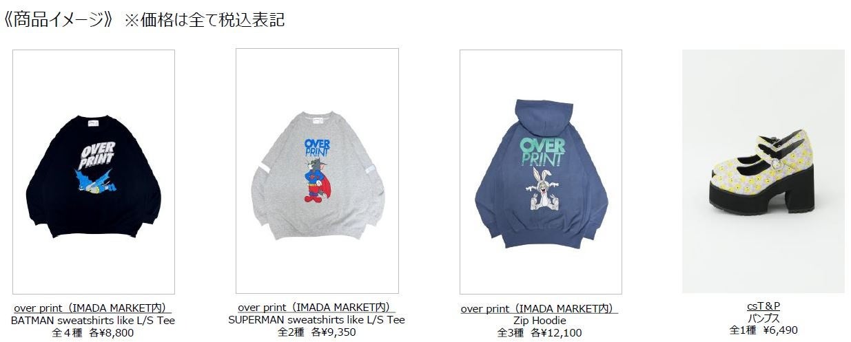 SHIBUYA109渋谷店にて、館内の人気13ブランドと「ワーナー・ブラザース」100周年のオリジナルコラボアイテムを販売いたします。また、参加店舗にて数量限定でノベルティもご用意しております。さらに、取り扱いアイテムを掲載したオリジナルリーフレットを数量限定で配布するほか、取り扱いアイテム(一部)をSHIBUYA109渋谷店3階~5階エレベーターホールにて「トゥイーティー」、「トムとジェリー」のスタチューとともに展示いたします。