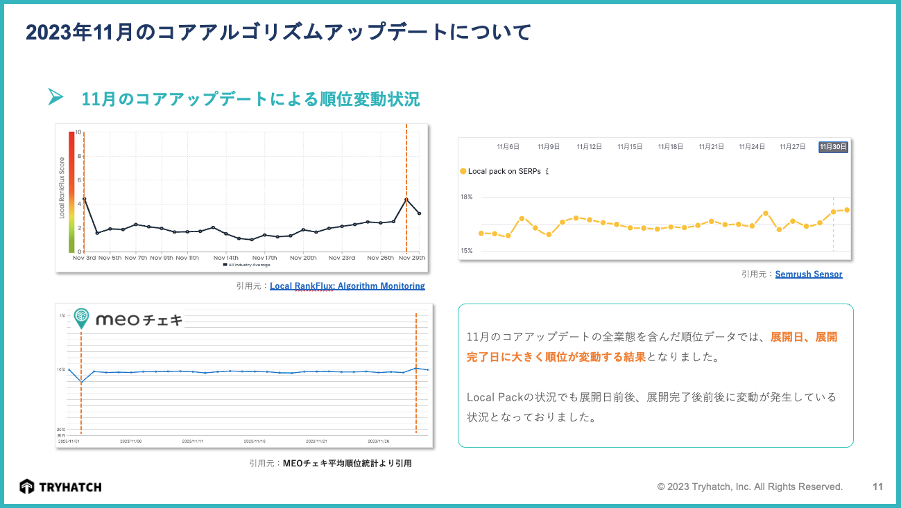 11月の「コアアップデートに関するMEOレポート」のサマリー