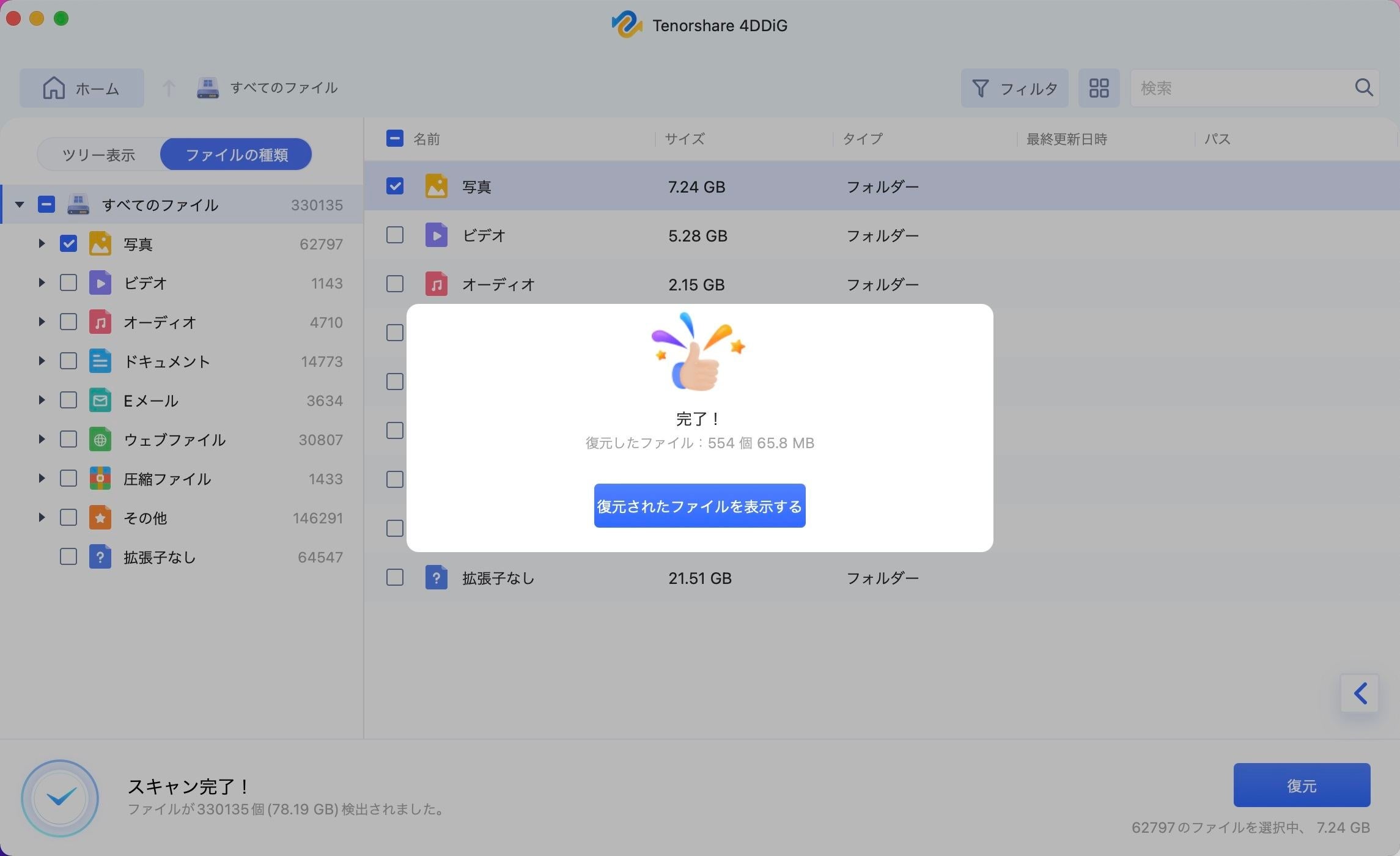 Tenorshare会社は2023年1月6日(金)に4DDiG (Mac) V5.1.2を発表しました。4DDiGはMacで誤って削除されたファイルを復元できます。また、破損してしまった写真や動画を修復することも可能です。