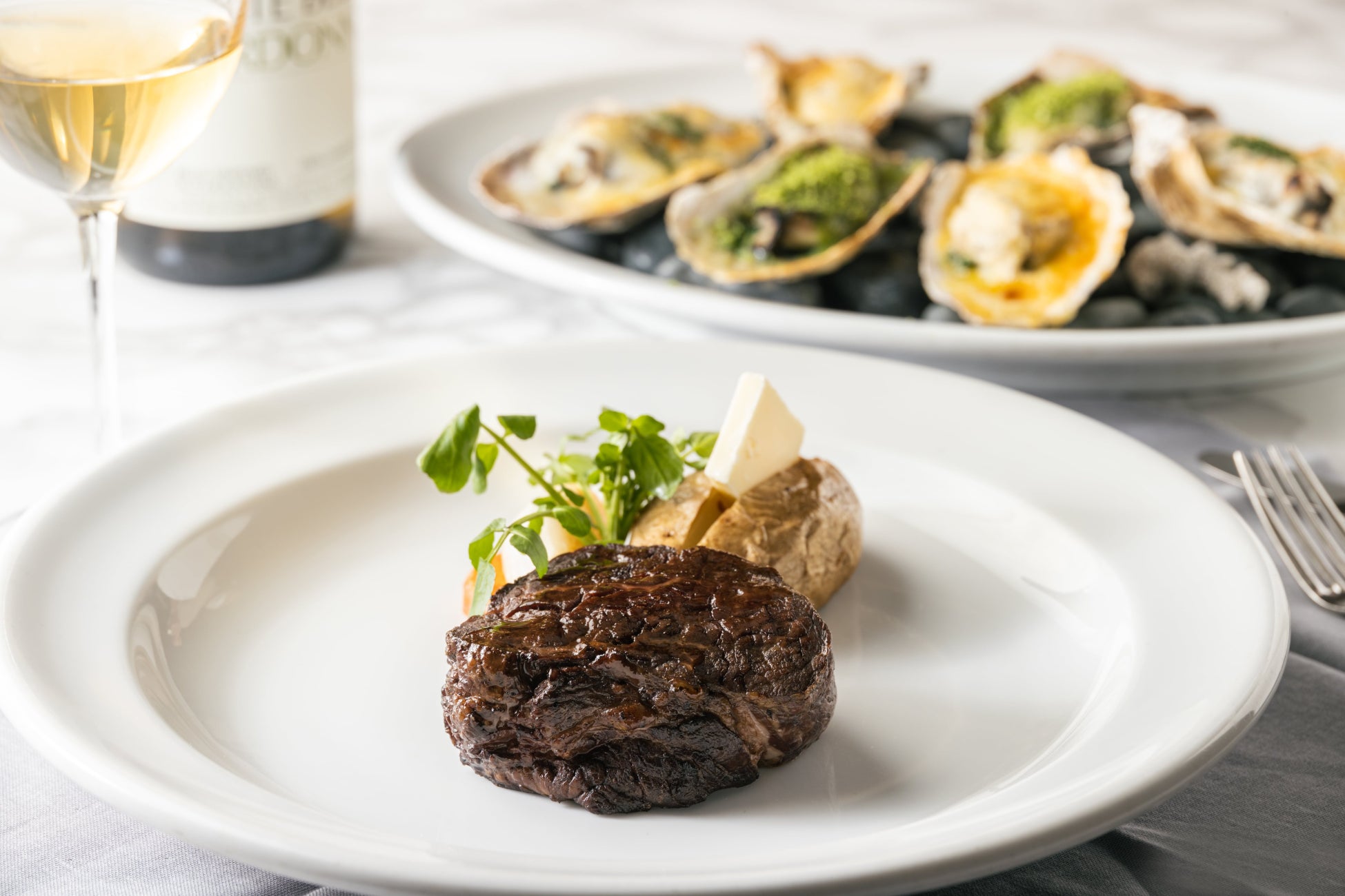 第一弾といたしまして4月1日(土)〜6月15日(木)の期間限定で【オイスター&ステーキ”ROCKEFELLER”~ロックフェラー~】コースを販売致します。