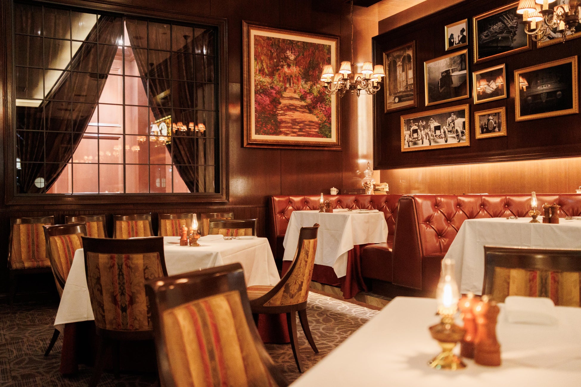 大阪築港にある1923年に建てられた100年もの歴史ある赤レンガ倉庫をリモデルしたクラシックカーミュージアムの一角にあります。扉を開ければそこは1900年代前半にタイムスリップしたかのような空間が広がります。世界中から集められたこだわりのアンティークな調度品に囲まれた店内は映画のワンシーンを思わせる大人の隠れ家の様な雰囲気で、記念日やお祝い事、ご接待、ご褒美ディナーなど様々なシーンにご利用いただいております。