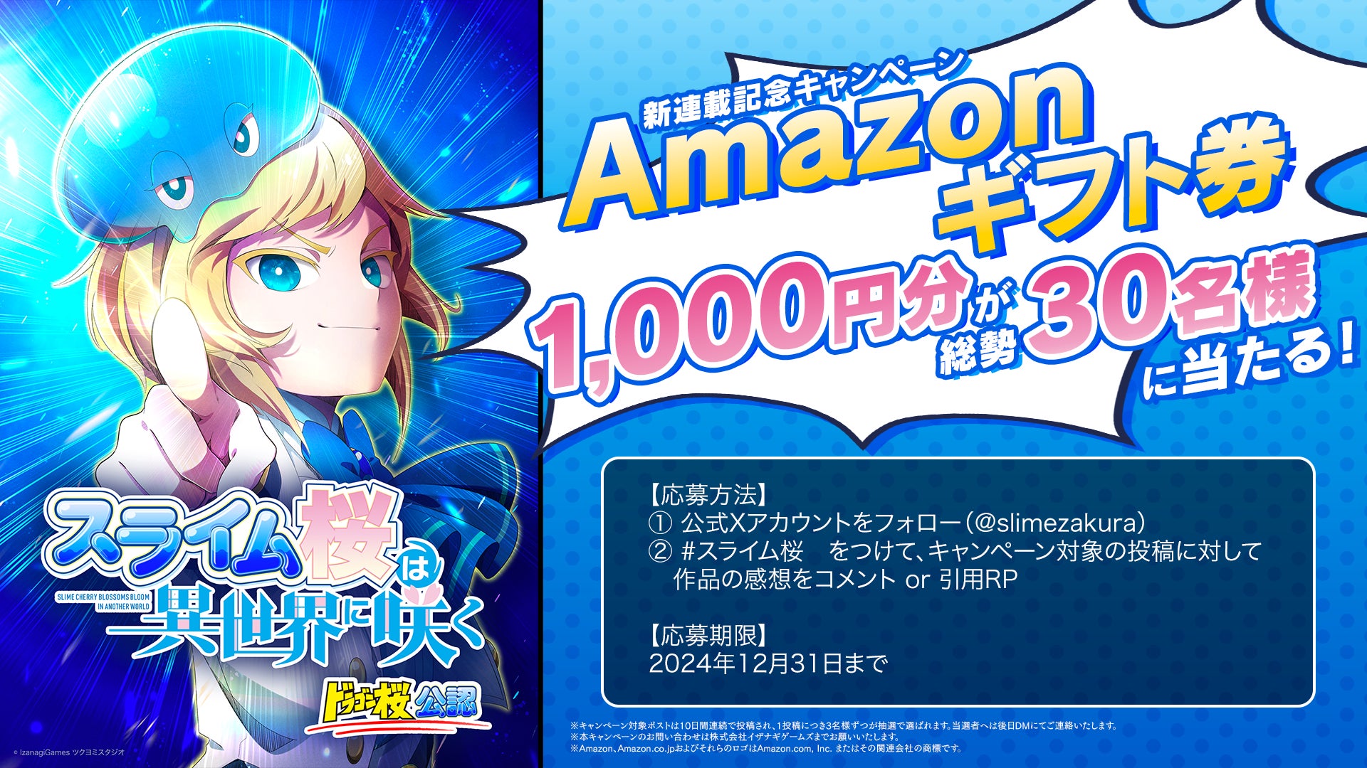 大ヒット作『ドラゴン桜』公認!異世界転生 × 東大受験マンガ『スライム桜は異世界に咲く』本日11月24日にLINEマンガで連載開始!Amazonギフト券が総勢30名様に当たるキャンペーンを実施!