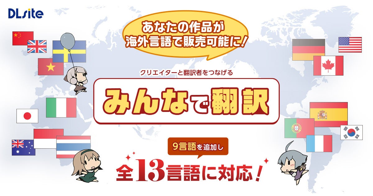 登録するだけであなたの作品がグローバルで展開! 『DLsite』の翻訳サービス『みんなで翻訳』、対応言語を新たに9言語追加し、全13言語で翻訳が可能に!