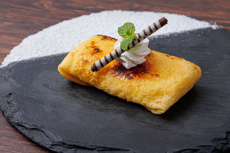 ②お一人さまに一つ「カスタードのクレープ包み」を提供(前日17時までに要予約)