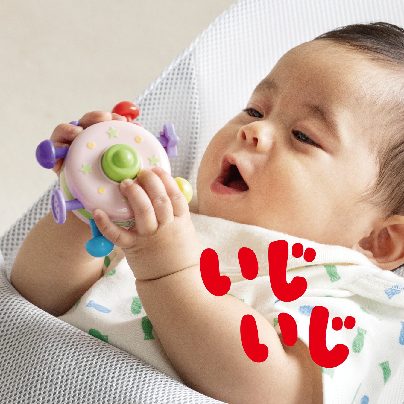 この「Baby curiosity®」は、一人ひとりの赤ちゃんの好奇心に合ったおもちゃを選んでいただきたいという思いのもと、細やかな好奇心の変化に合わせたラインナップをそろえ、赤ちゃんの好奇心行動を想起させる「好奇心オノマトペ」を各商品のパッケージに記載しています。