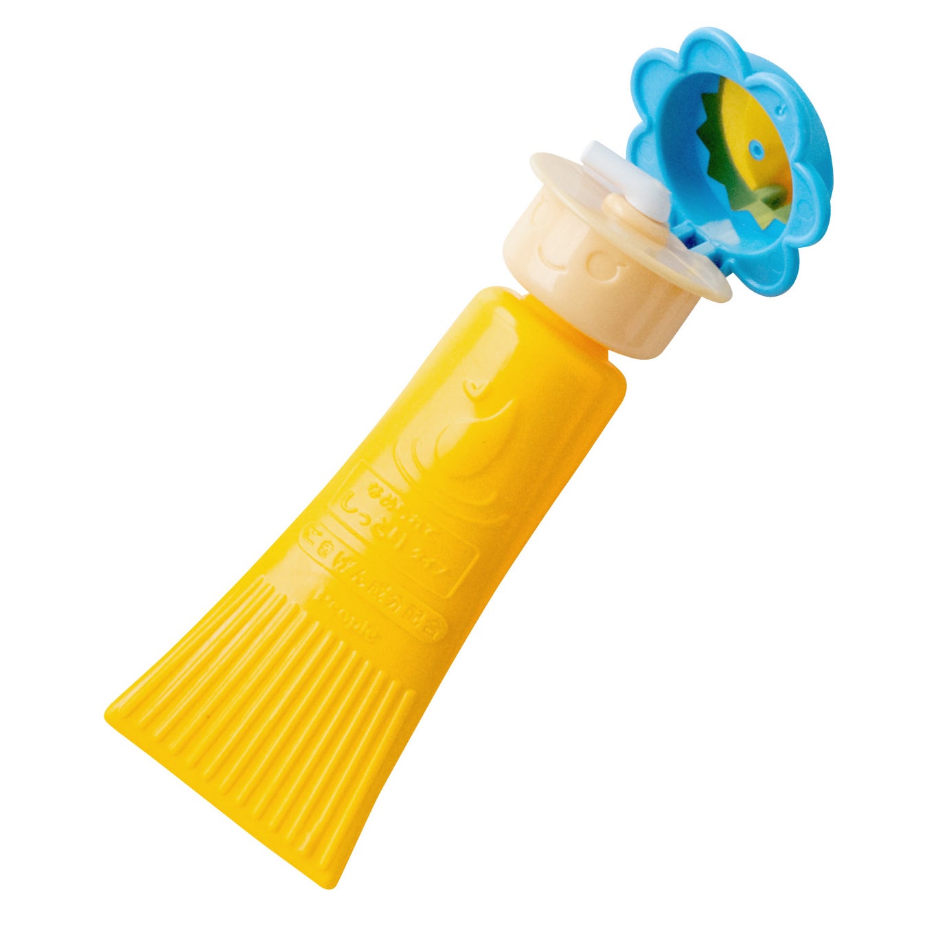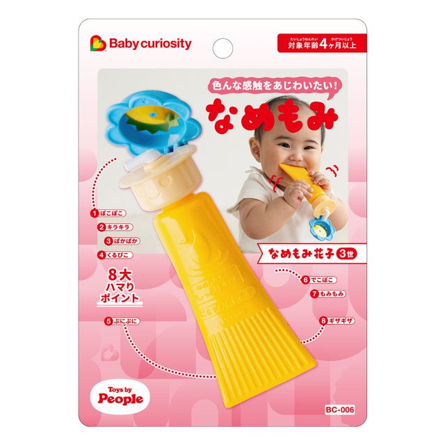 なぜか赤ちゃんが好きな保湿クリームのチューブ。もみもみ、ギザギザ、フタぱかぱか…いろんな触感があじわえる弾力ボディです。「なめもみ花子3世」は、赤ちゃんが一番惹かれる「パカパカ動くフタ」の部分が目立つよう配色を工夫しています。