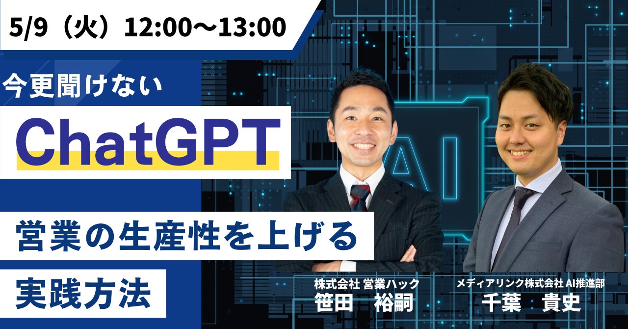 ChatGPT×営業の可能性。AIで営業の生産性を上げるノウハウをお伝えします【5/9(火)12:00~無料ウェビナー】