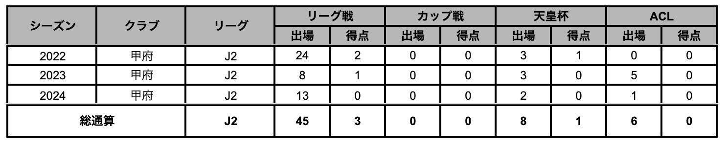 サッカー歴:児玉ディパーチャFC→江南南サッカー少年団→クマガヤSC→前橋育英高→法政大→ヴァンフォーレ甲府