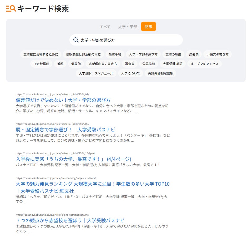 旺文社の受験情報誌、月刊『螢雪時代』と連携し、志望校の選び方、学習方法、受験対策さらには心身のコンディション管理まで、合格に必要な情報を網羅。フリーワード検索で、自分の関心に近い情報にも簡単にアクセスできます。
