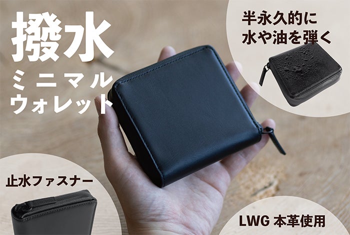 クラウドファンディング「machi-ya」のオリジナルラインから、皮革保護剤を浸透させた本革財布「撥水ミニマルウォレット」が販売スタート