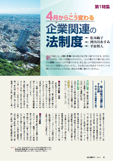 ■第1特集 4月からこう変わる 企業関連の法制度/西村あさひ法律事務所 松本絢子・平原将人・河内谷あすみ