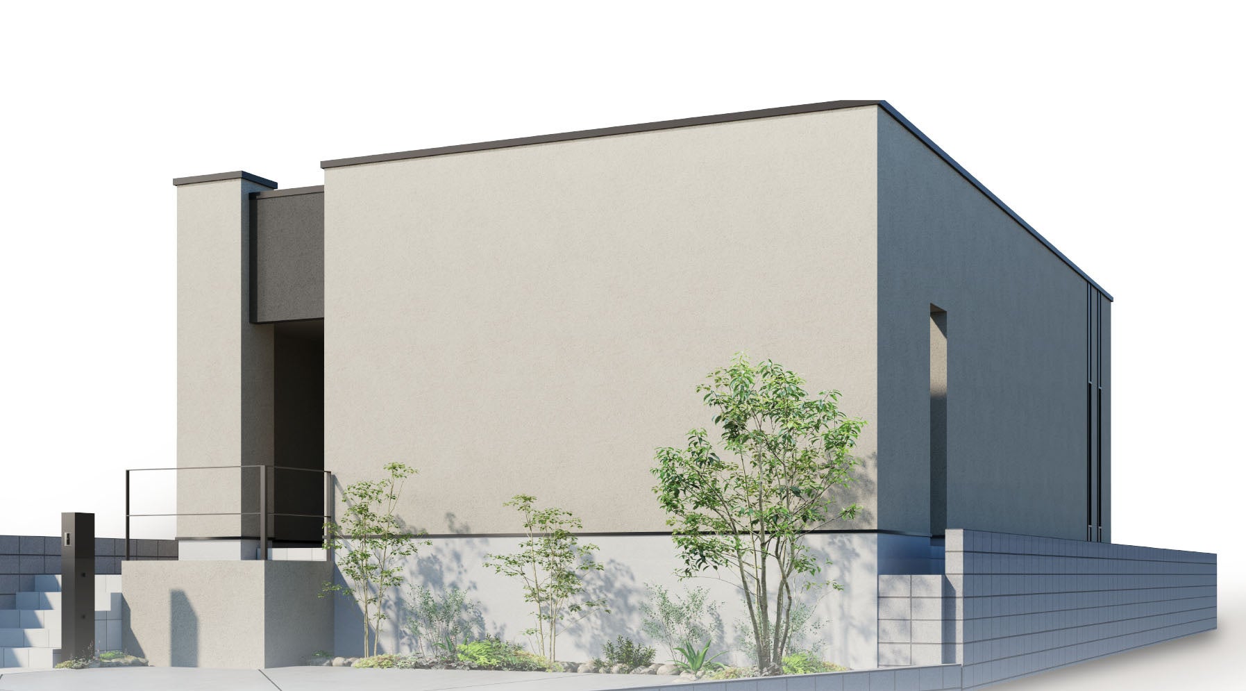 洗練されたシンプルさの中に、普遍的な美しさを宿す外観デザイン。重厚感のある正面外壁の内側には、外からの視線を遮りながら解放感を享受できるプライベートヤードを配置。都市の喧騒を忘れ、静けさと上質な時間に包まれる。そんな豊かさを叶える、平屋の新しいスタイルです。