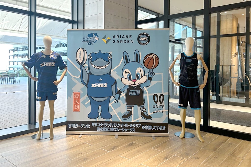 有明ガーデンの皆さまには昨シーズンのプレーオフで開催していただいたパブリックビューイングだけでなく、TUBCの大きなパネルを掲げていただき有明ガーデンを訪れるお客さまにTUBCを知っていただく機会もおつくりいただいたり、地域イベントの開催にご協力いただいたりするなど多大なご協力をいただいております。