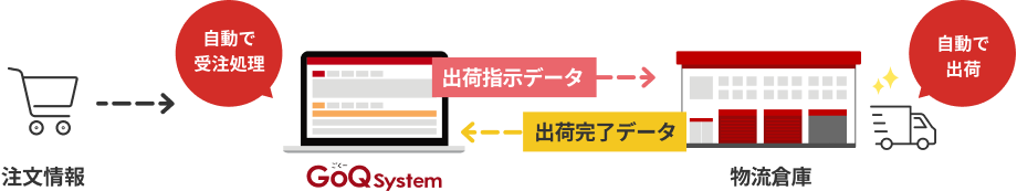 「GoQロジ」で管理されている最新の外部倉庫在庫データが、GoQSystemを通じて各モールへ自動反映されます。