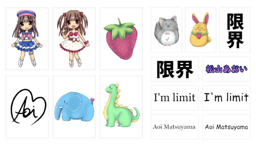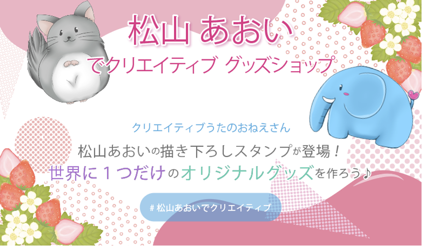 作詞作曲などマルチに活躍する「クリエイティブうたのおねえさん」こと人気アイドル松山あおいの描き下ろしスタンプを使って世界に1つだけのオリジナルグッズが作成できる!