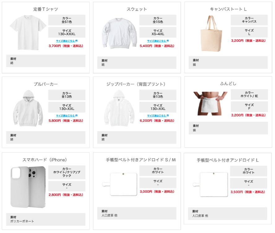 “みんなが違うから世界は楽しい”をコンセプトに、Tシャツを始めパーカー、スマホケース、ネイル、のぼり旗など1500種類以上のアイテムを取りそろえたオリジナルグッズ作成のオンデマンドサービス。