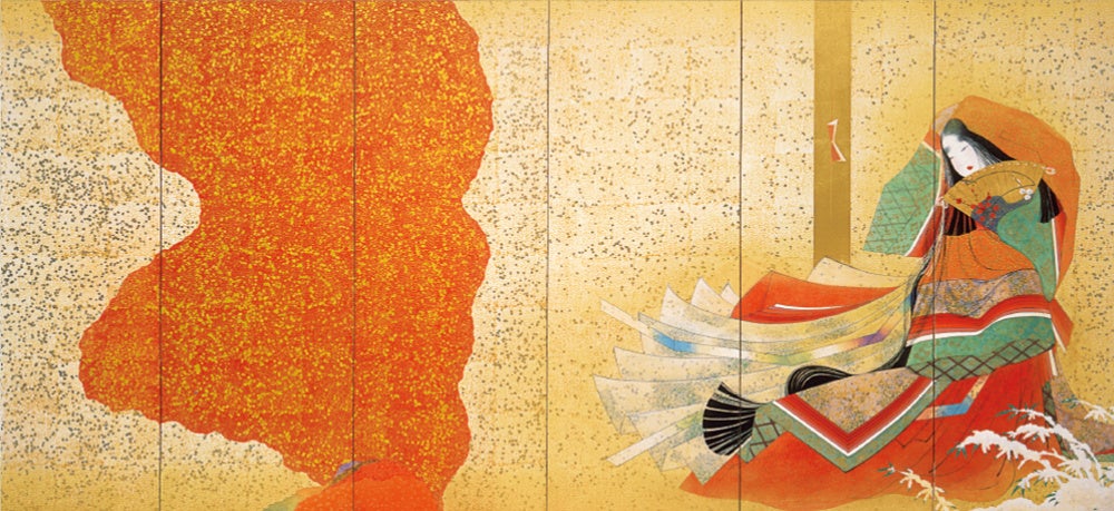 ■寂聴源氏・装幀画「真木柱」六曲一隻屏風 石踊達哉 作