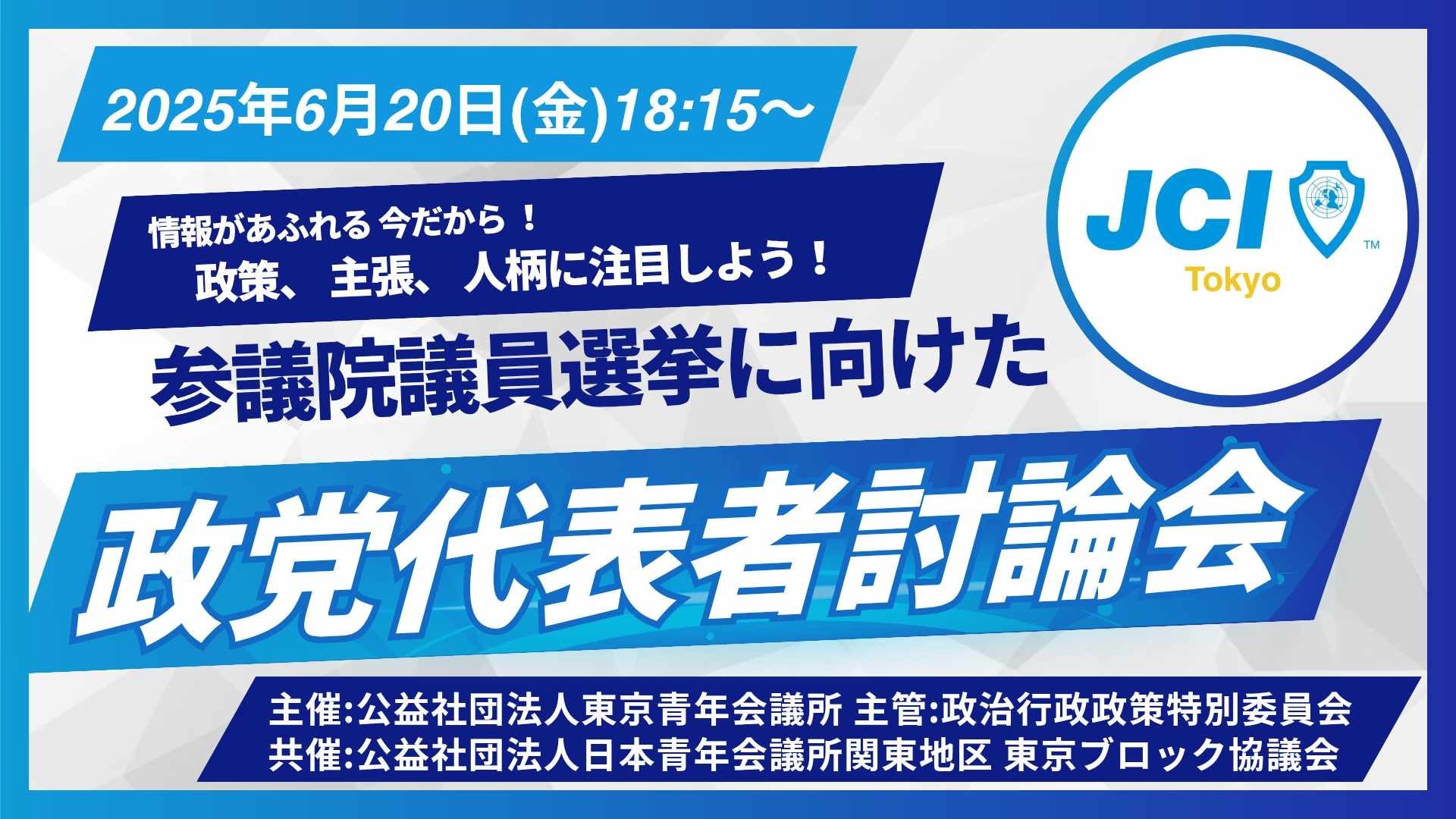 公益社団法人東京青年会議所6月例会 参議院選挙に向けて政党代表討論会をライブ配信!【6月20日(金)18:15~@東京JC公式チャンネル/ニコ生/THE PAGE】