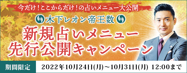 テレシスネットワーク株式会社(本社:東京都港区、代表取締役:鷹石惠充 https://www.telsys.co.jp/)は、2022年10月24日(月)より、月額公式サイト『木下レオン◆帝王数』にて、『木下レオン帝王数 「新規占いメニュー先行公開キャンペーン」』を公開いたします。