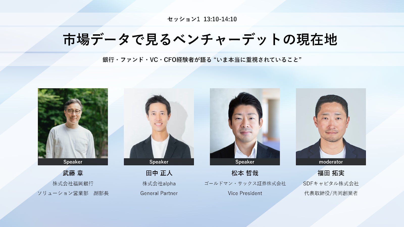 セッション1:市場データで見るベンチャーデットの現在地 〜銀行・ファンド・VC・CFO経験者が語る “いま本当に重視されていること”〜