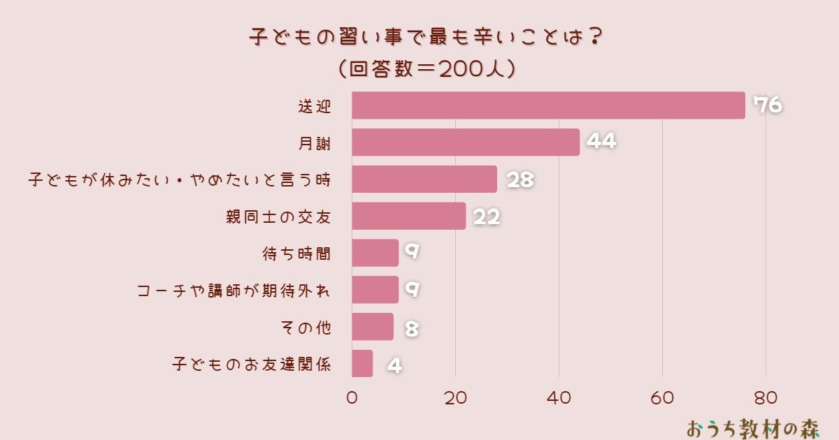 - 【総括】今回のアンケートで子どもの習い事で最も辛いことは?1位は『送迎』でした