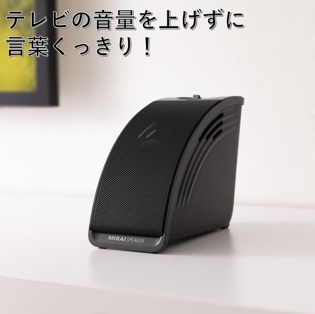 テレビの音量を上げなくても、言葉が聞き取りやすいミライスピーカーはシリーズ累計販売25万台突破※1、各種売場のスピーカーランキング1位※2の話題の商品。言葉が聞こえにくい方でも言葉がはっきり聞こえる独自の音に変換して、広く遠くまで届けるスピーカーです。