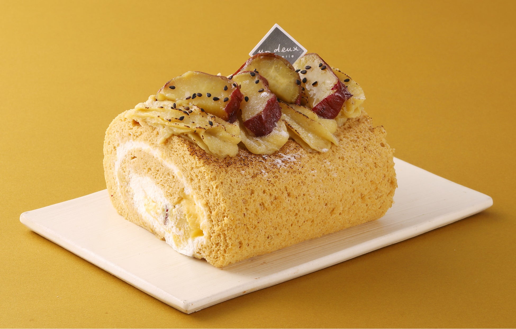 こだわりのしっとり生地で角切りの焼き芋を巻いたロールケーキです。