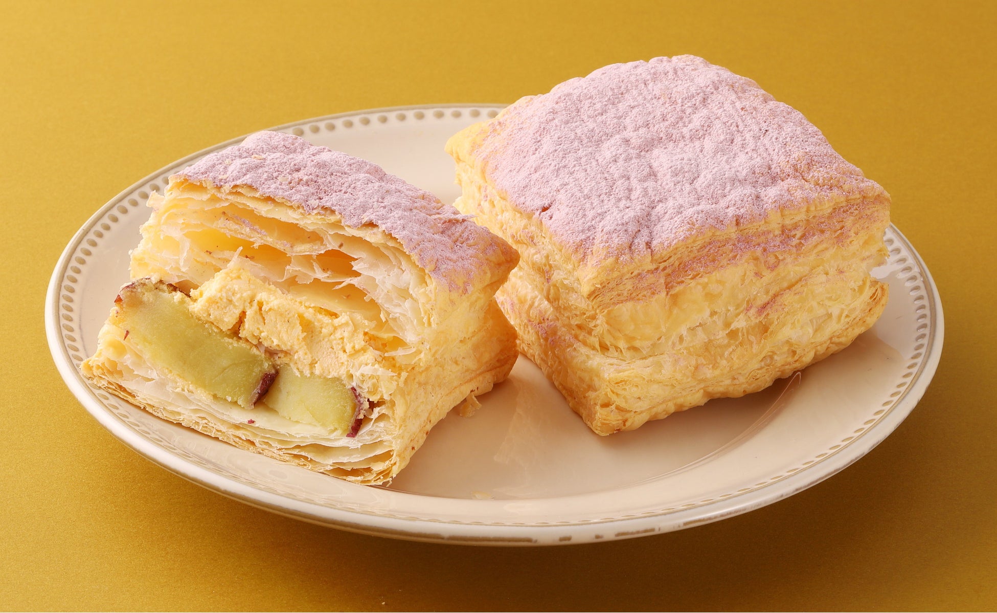 さくさくのパイ生地の中に特製のカスタードクリームと行方市産のさつまいもを合わせた、秋の優しい味わいのクリームパイです。