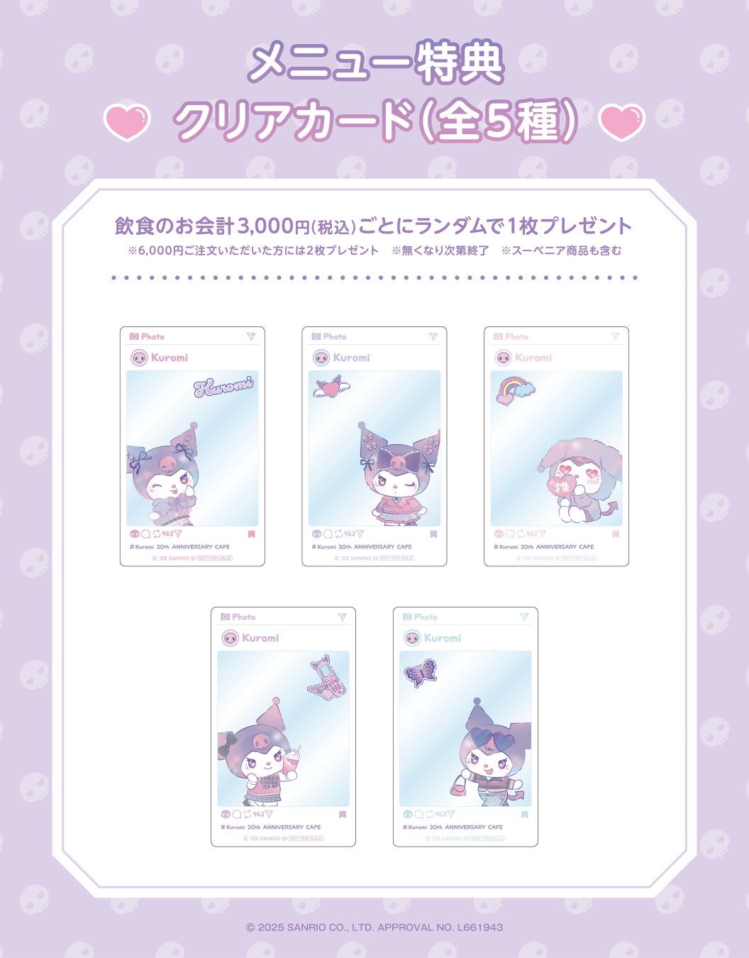 ■メニュー特典:飲食会計が3,000円(税込)以上の方に「クリアカード(全5種)」をランダムで1つプレゼント。※無くなり次第終了
