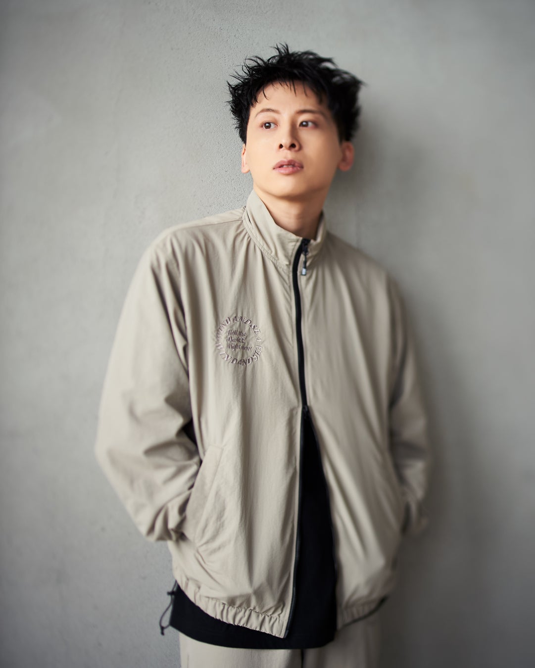 ジャケットは、インナーでレイヤードを楽しめるように、僕が制作チームにリクエストしたダブルジップがポイントです。中がメッシュで結構涼しいのでシーズンレスで楽しんでいただけると思います。コーディネートの外しアイテムとして普段のファッションに取り入れてほしいですし、自信をもって良いアイテムと言えるので、6面の皆さんには長く愛用していただけたら嬉しいです。