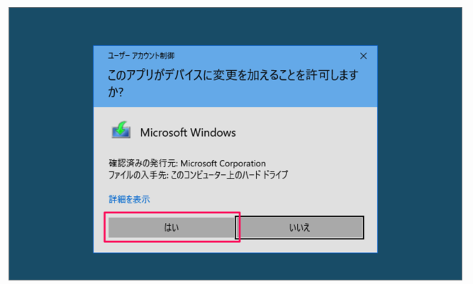 Step3:実行すると以下のメッセージが表示されます。「はい」を選択し続けてください。