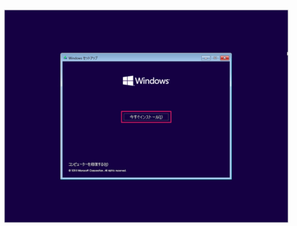 Step9:正しくBootされるとWindowsのセットアップが始まりますので、それを経て「今すぐインストール」をクリックします。