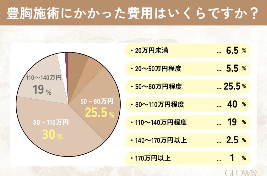 施術費用は「80万円以上~110万円程度」が最も多い価格帯