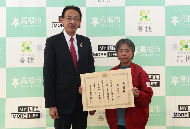 令和6年1月12日(金曜日)、高槻市立自然博物館「あくあぴあ芥川」で主任学芸員を務める高田みちよさんが市役所を訪問し、令和五年度文化庁長官表彰を受賞したことを濱田剛史市長に報告しました。