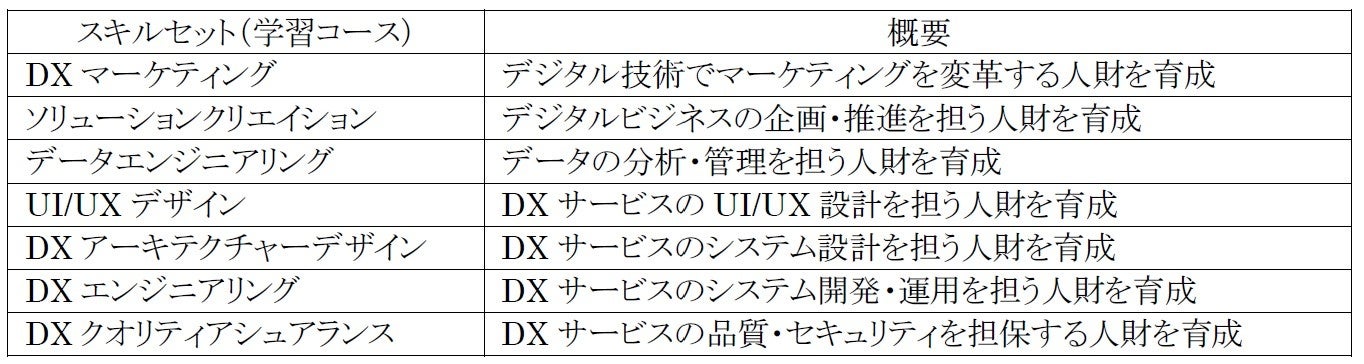 社内外講座を組み合わせた段階的な学習体系を整備するとともに、スキル・能力の社内認定制度などにより、既存のDX関連技術保有者およびDX関連業務従事者だけでなく、他業務からの職務転換者や新規入社者など、個々人の保有するスキルや知識レベルに応じた幅広い層の人財育成を推進します。