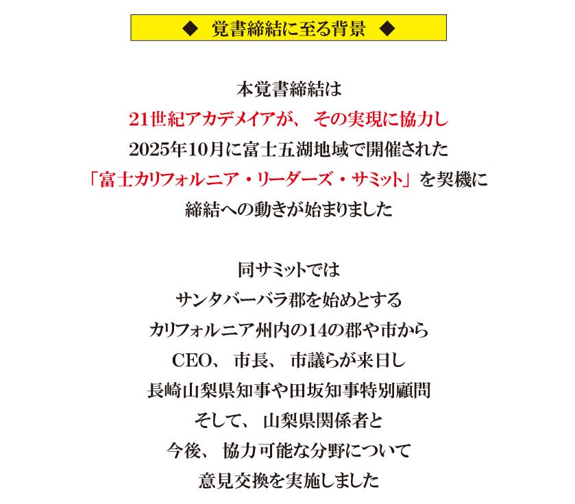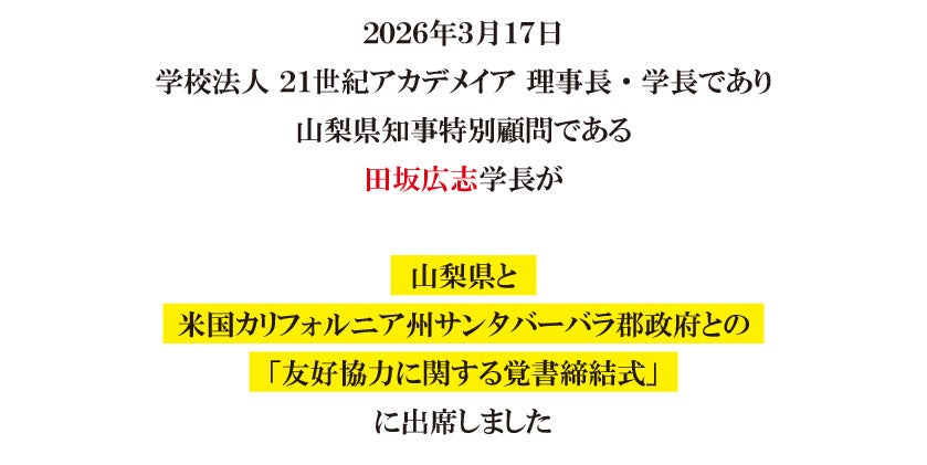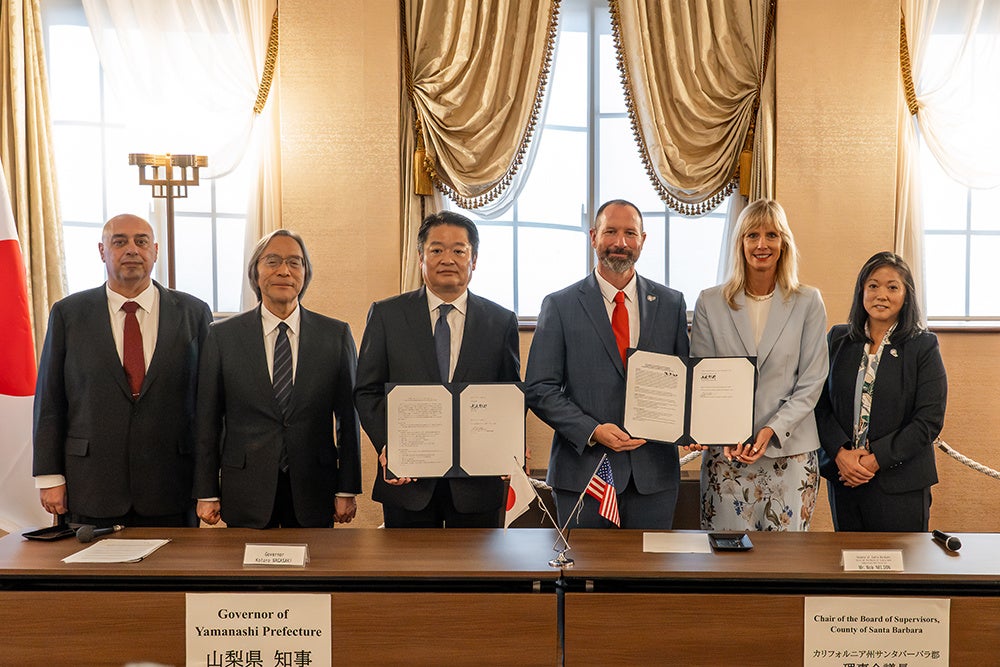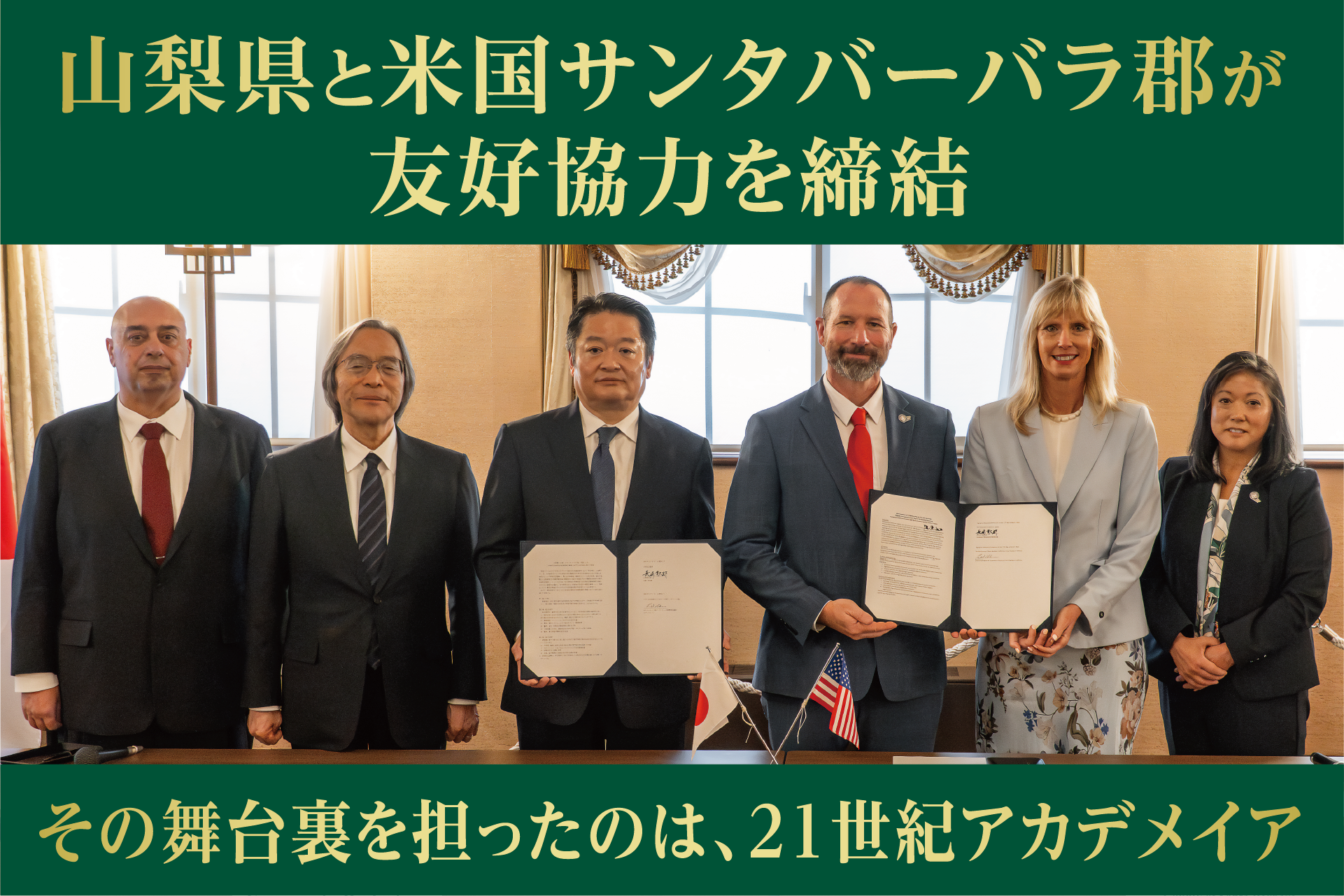 山梨県と米国サンタバーバラ郡が友好協力覚書を締結。21世紀アカデメイアが、この国際連携を推進。同郡初の海外提携