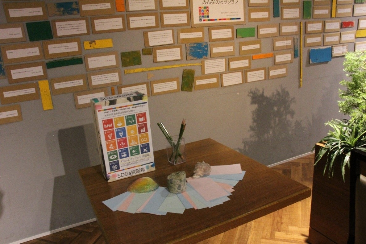 熊本大学はニューコ・ワン株式会社※との共同企画で、熊大まちなかキャンパス「熊本大学 松永拓己と芽吹く学生達の作品展」を開催しております。松永教授の絵画作品、学生達の作品、SDGsをテーマとしたアート作品、また、一般の方々を含め誰でも参加できるSDGsの取組(私へのミッション、みんなのミッション)を言葉アートとした「SDGsウォールアート」を制作展示しています。