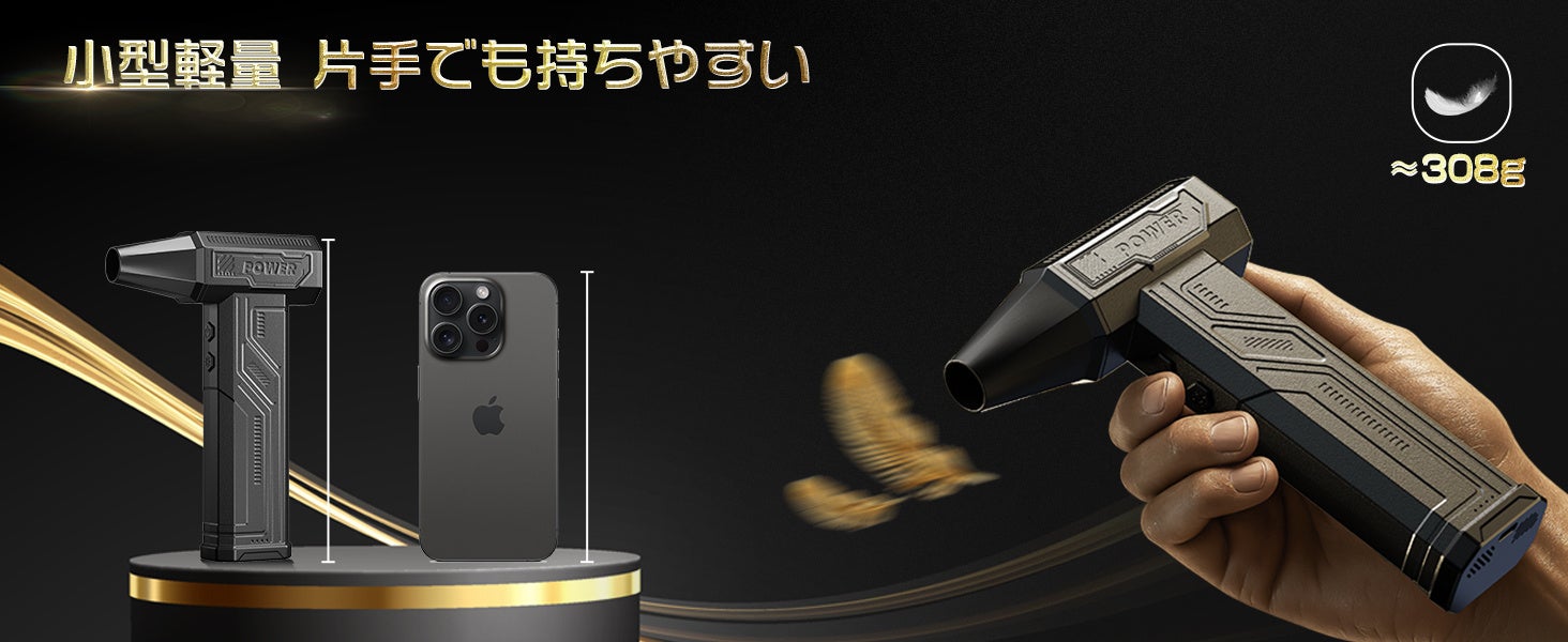 Ciniffoエアダスターは、日本市場で初めてダブルタービンファンを搭載。最大風速120m/s、風量は従来比約3倍。さらに、ブラシレスモーターの採用により、騒音・電力消費を約30%削減。