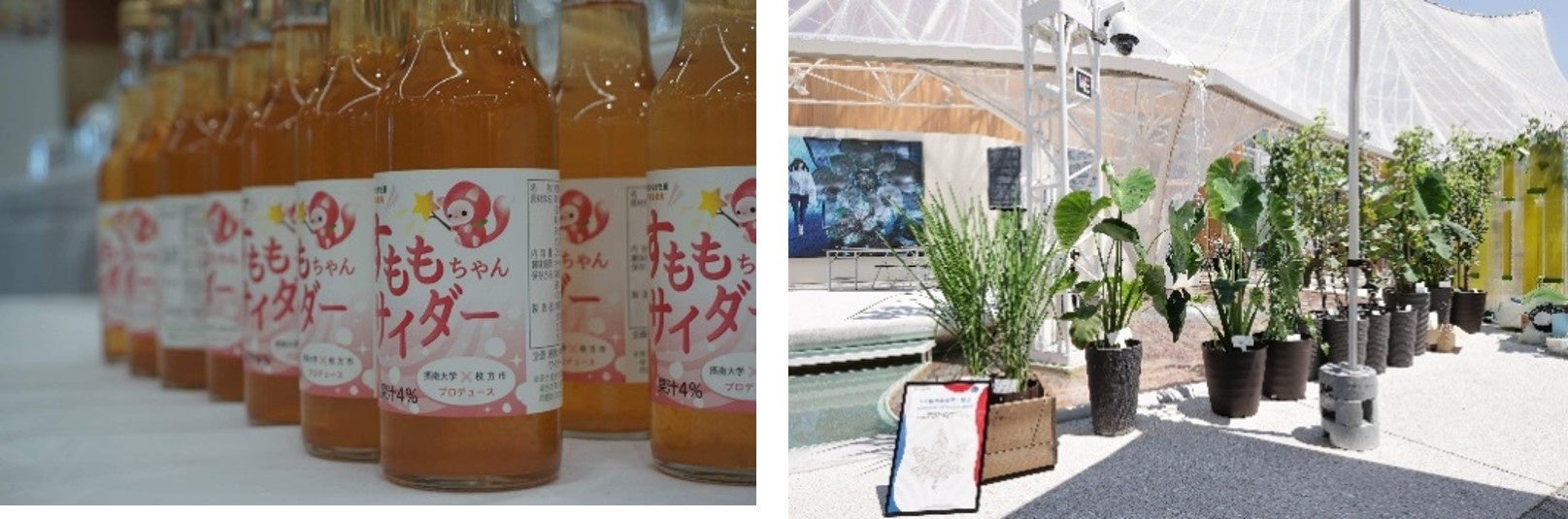 本出展は、摂南大学開学50周年記念事業『「挑む、楽しむ。」プロジェクト』の1つ、薬学科 伊藤優准教授、農業生産学科 川崎通夫教授が代表を務める「摂南アグロボタニカルプロジェクト」の取り組みによるものです。当日は、薬学部・農学部の教員や学生が出展に携わり、大学の教育・研究に利用している薬草などの鉢植えを展示するほか、薬学部附属薬草植物園や農学部附属農場で収穫した薬草を使った健康ドリンクと、すももちゃんサイダーの試飲を実施します。